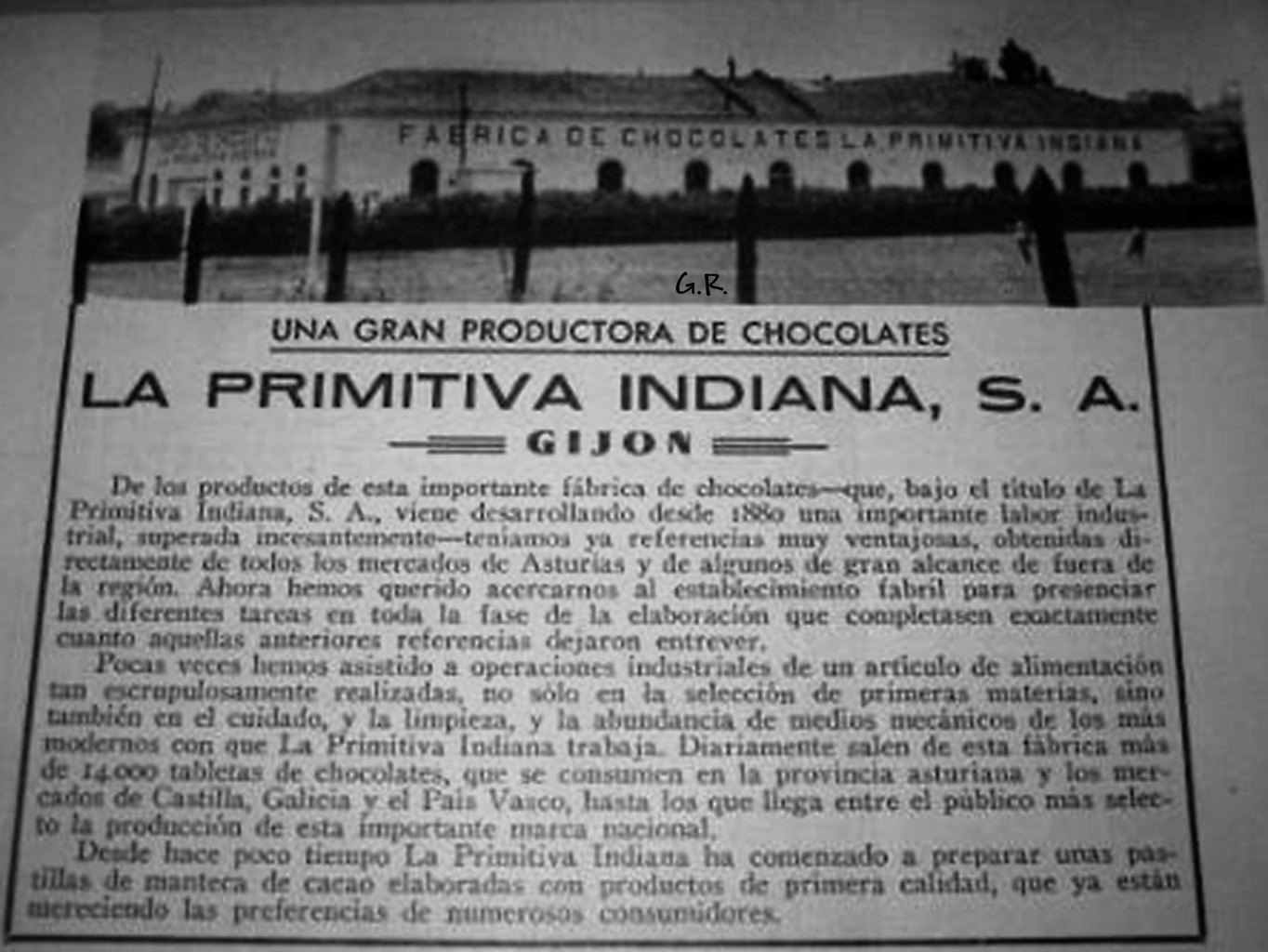 La fábrica de chocolates La Primitiva Indiana, durante su derribo.(archivo Municipal de Gijón, colección Padre Patac). Del libro ´Historias del Llano¨. Luis Miguel Piñera Entrialgo, Francisco Javier Granda Álvarez.
