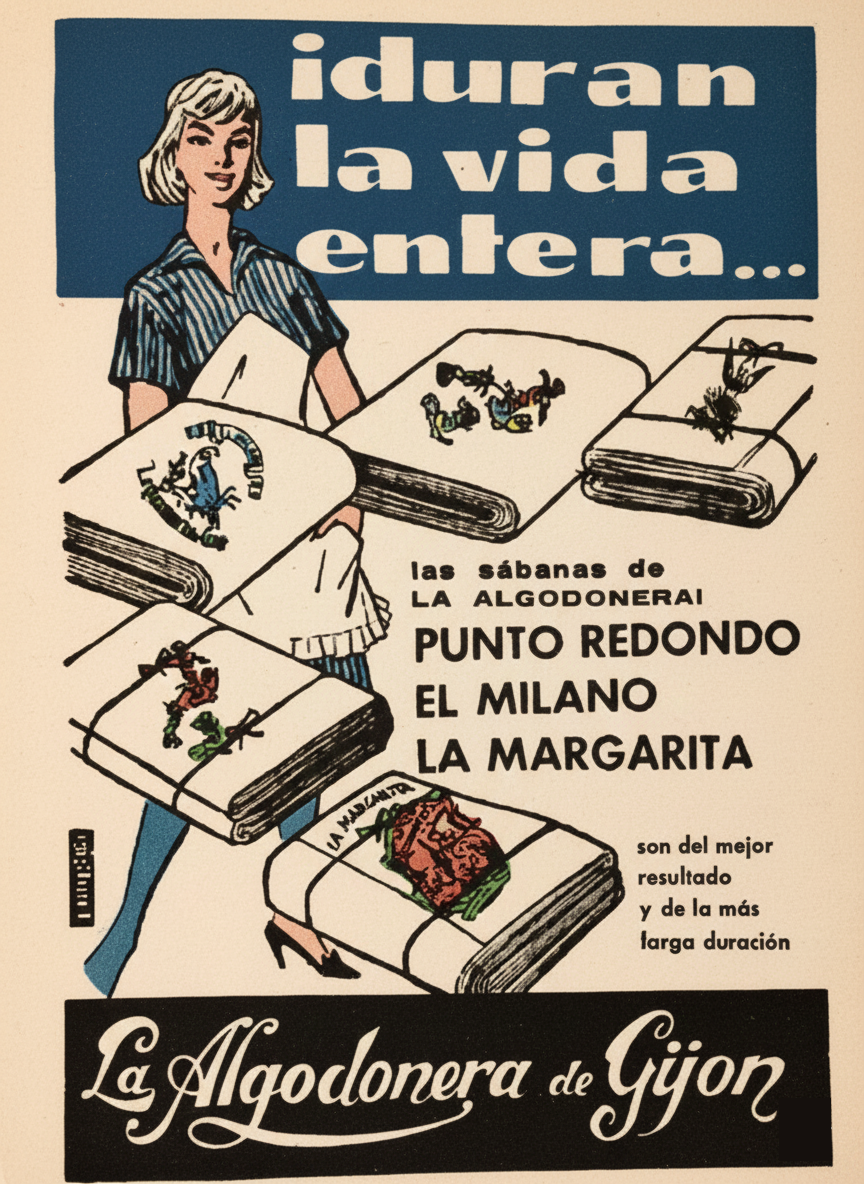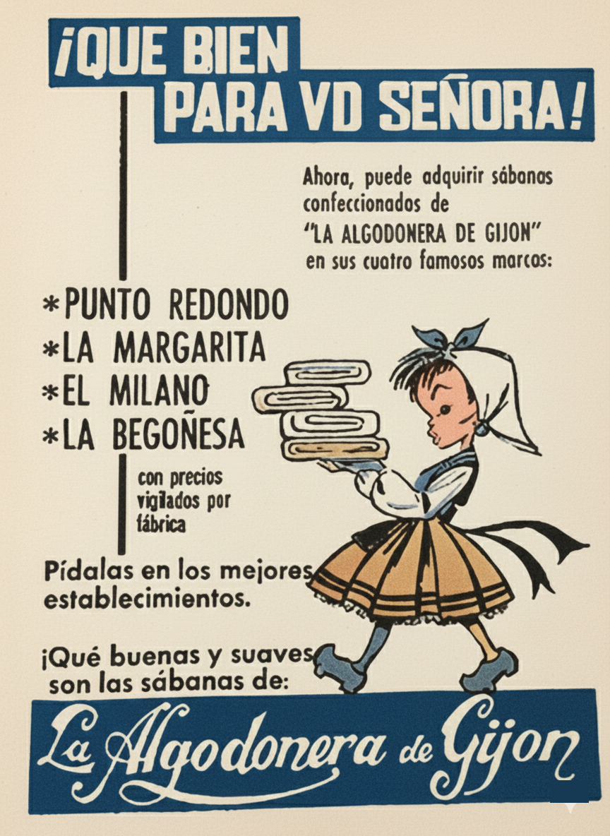 Aparte del archivo de Fotografía Aérea y Terrestre recientemente adquirido a la empresa bilbaína FOAT, el Muséu del Pueblu d’Asturies cuenta entre sus fondos fotográficos con numerosas imágenes tomadas a vista de pájaro. Muchas de ellas tan interesantes para documentar el desarrollo urbano de nuestras ciudades y su pasado industrial como esta de la Fábrica La Algodonera S. A., de La Calzada (Gijón/Xixón), hoy destinada a zona residencial. La imagen que os mostramos forma parte de un cuadernillo de felicitación de la empresa para las Navidades de 1962.