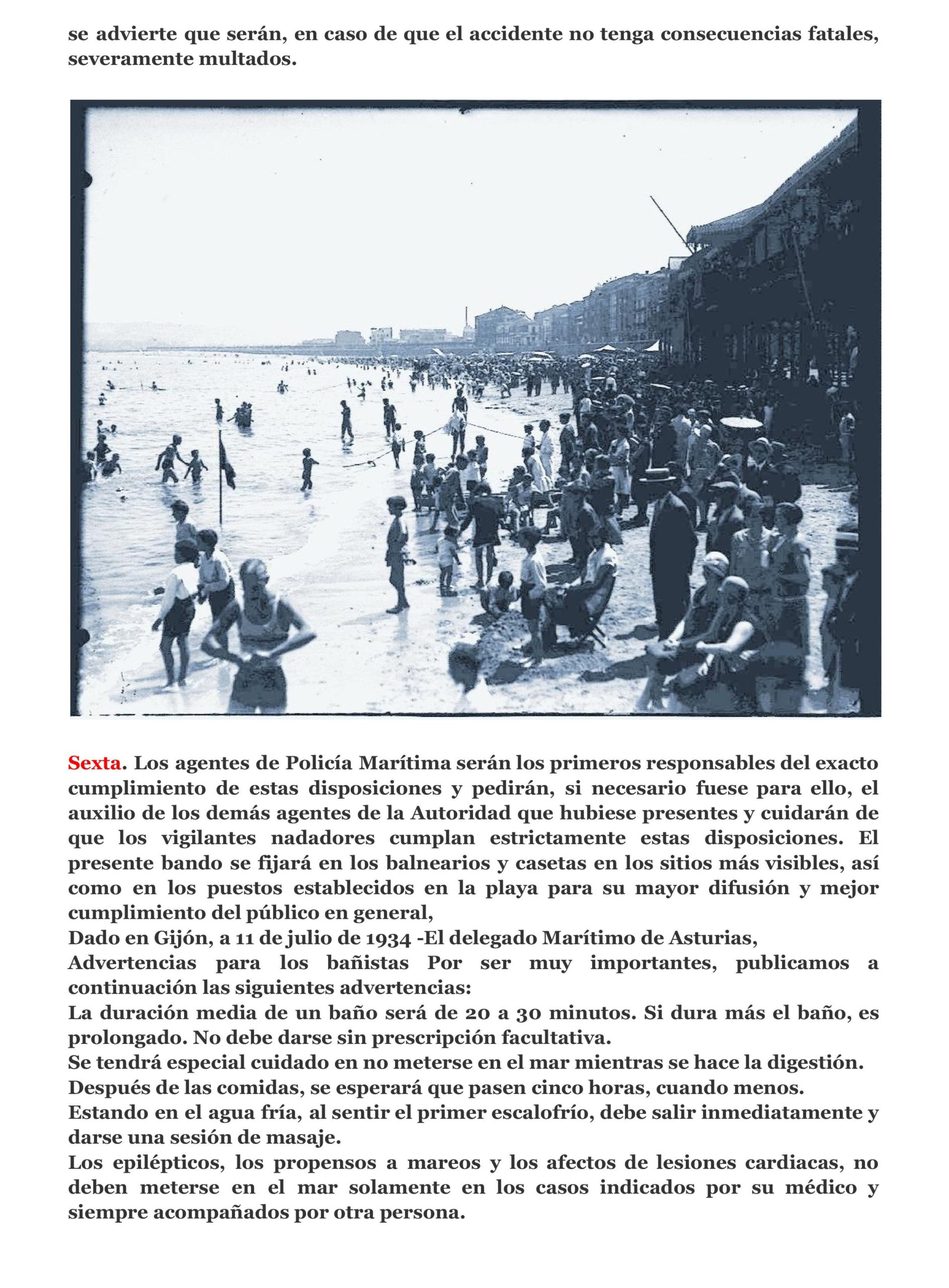 La temporada de baños en 1934 -Importantes disposiciones para nuestra playa.