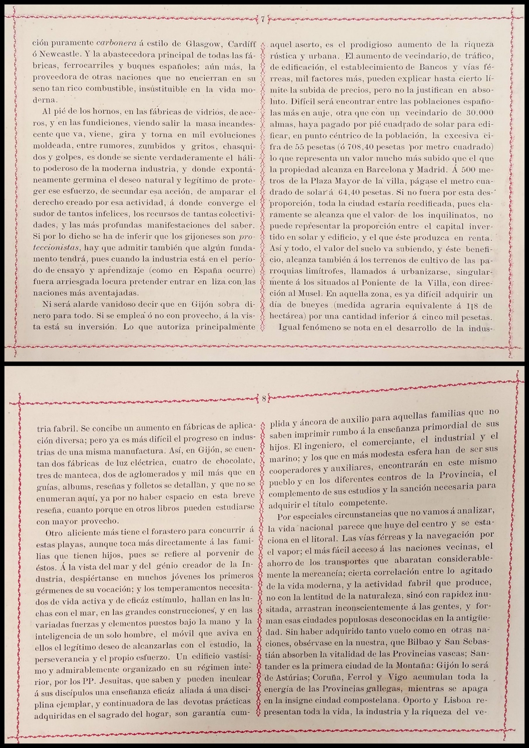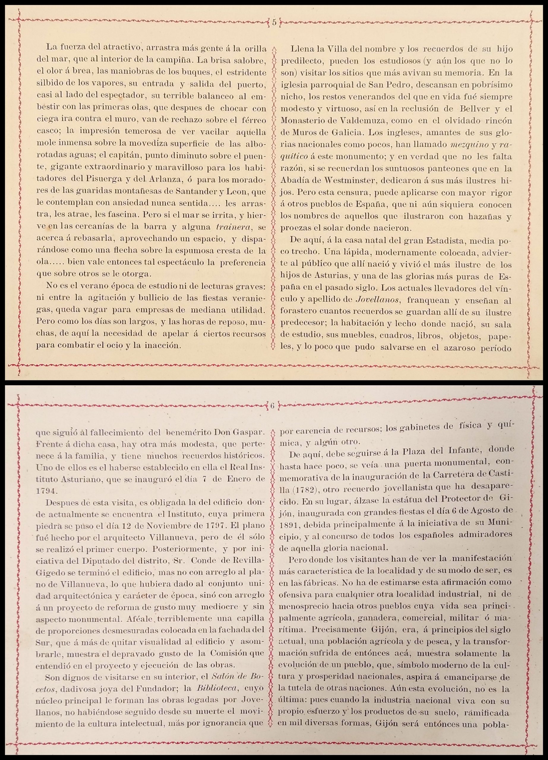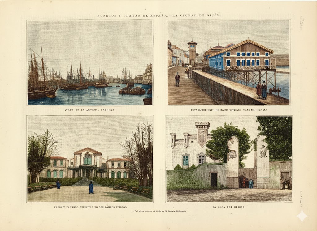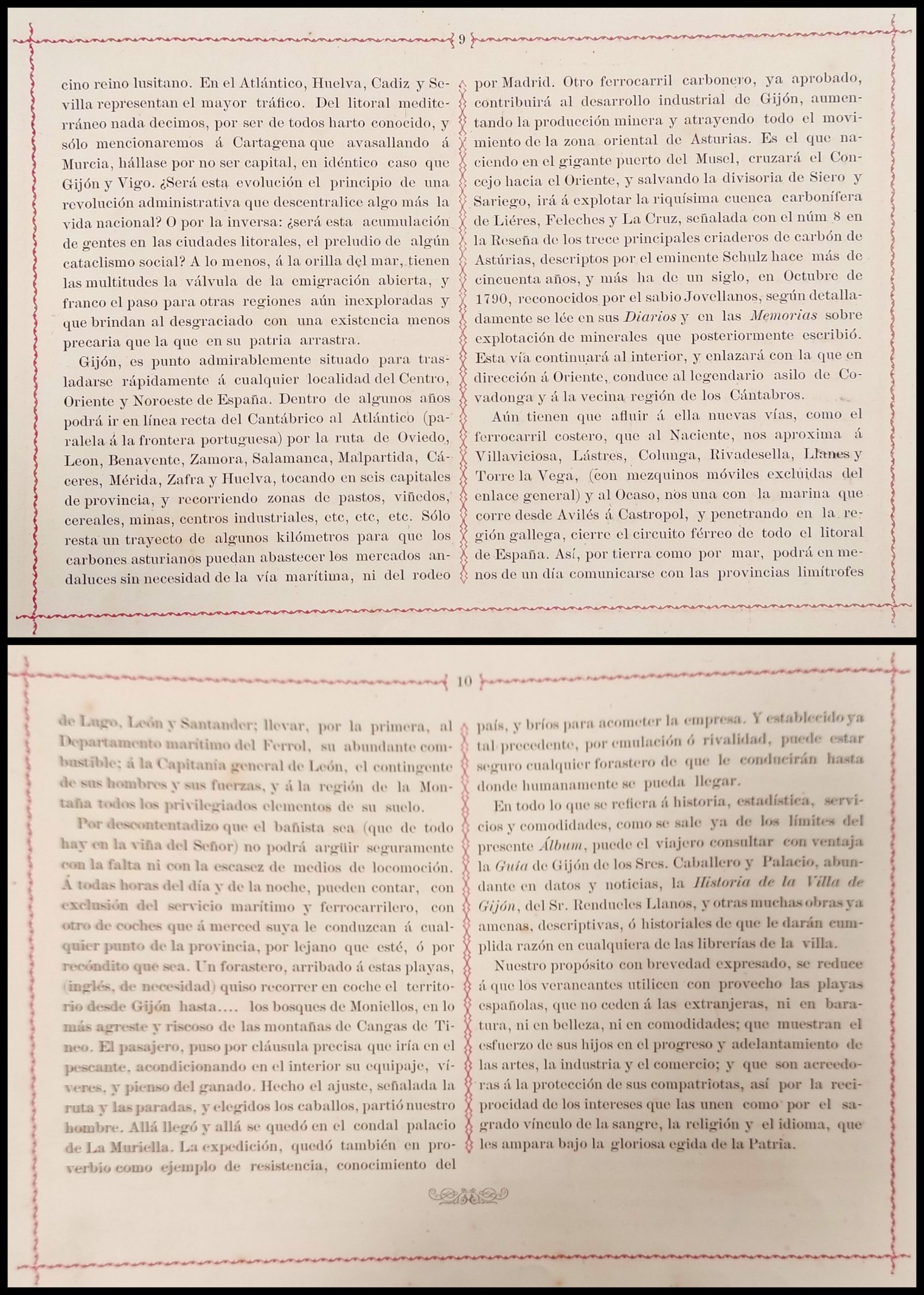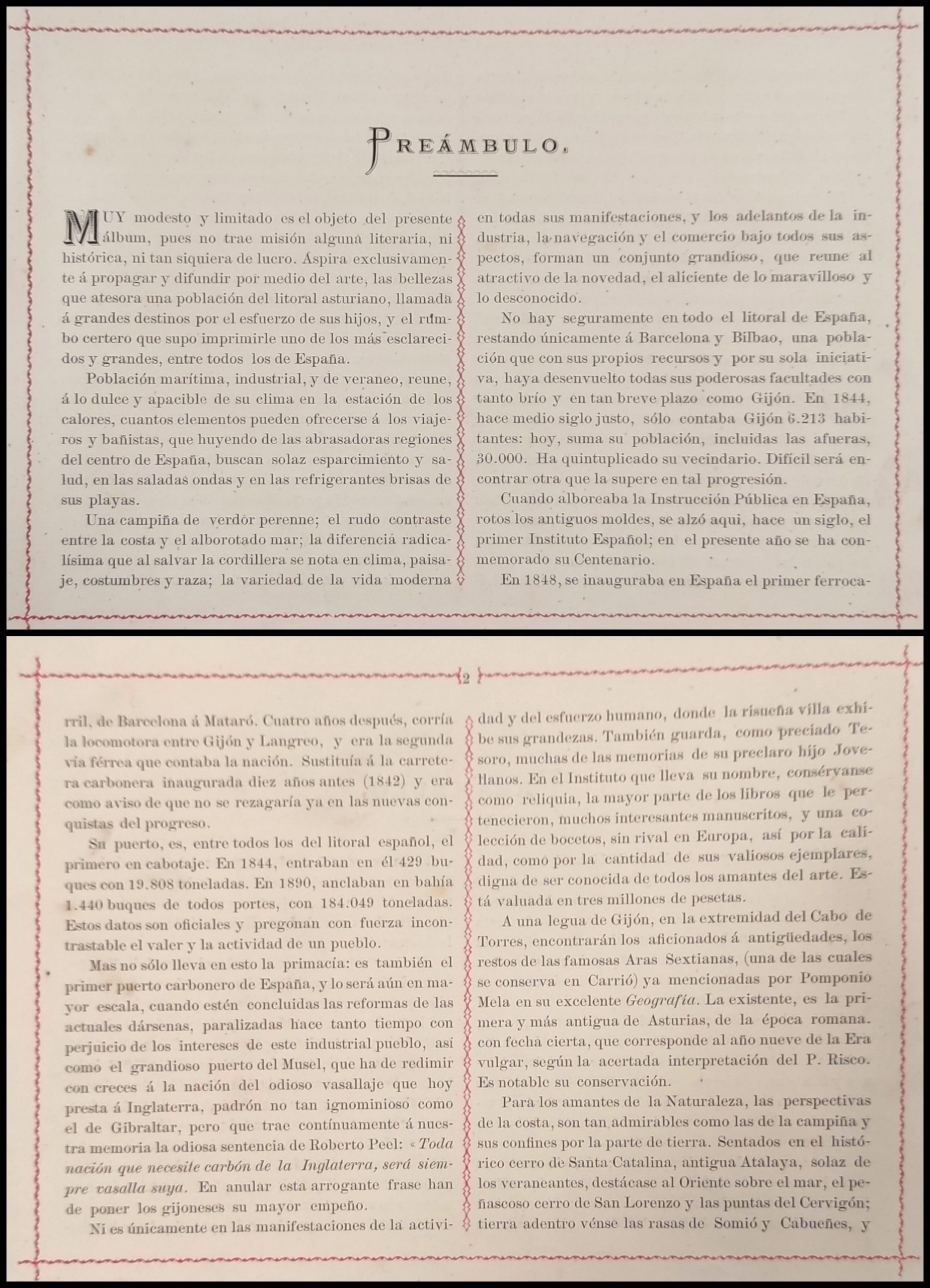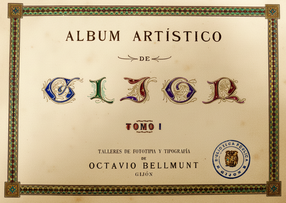 A finales de Mayo de 1894, se ponían a la venta al precio de 24 pesetas, los dos tomos de el Álbum (Artístico) de Gijón impresos en los talleres de fototipia y tipografía de Octavio Bellmunt situados en la Carretera de Villaviciosa nº 25. El preámbulo corrió a cargo de Don Julio Somoza y la obra se componía de 13 láminas fotográficas y 7 hojas tipográficas intercaladas , con anuncios del comercio y la industria local en el tomo I, y 14 láminas y sin publicidad en el tomo II.