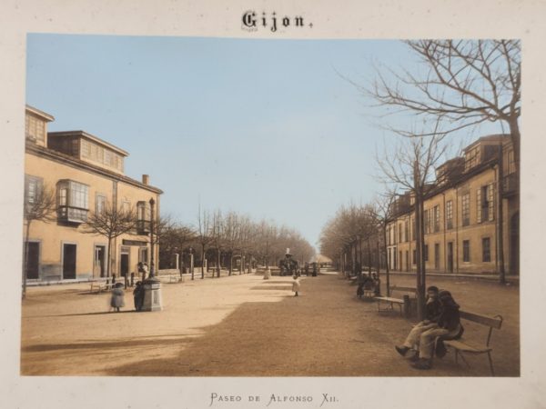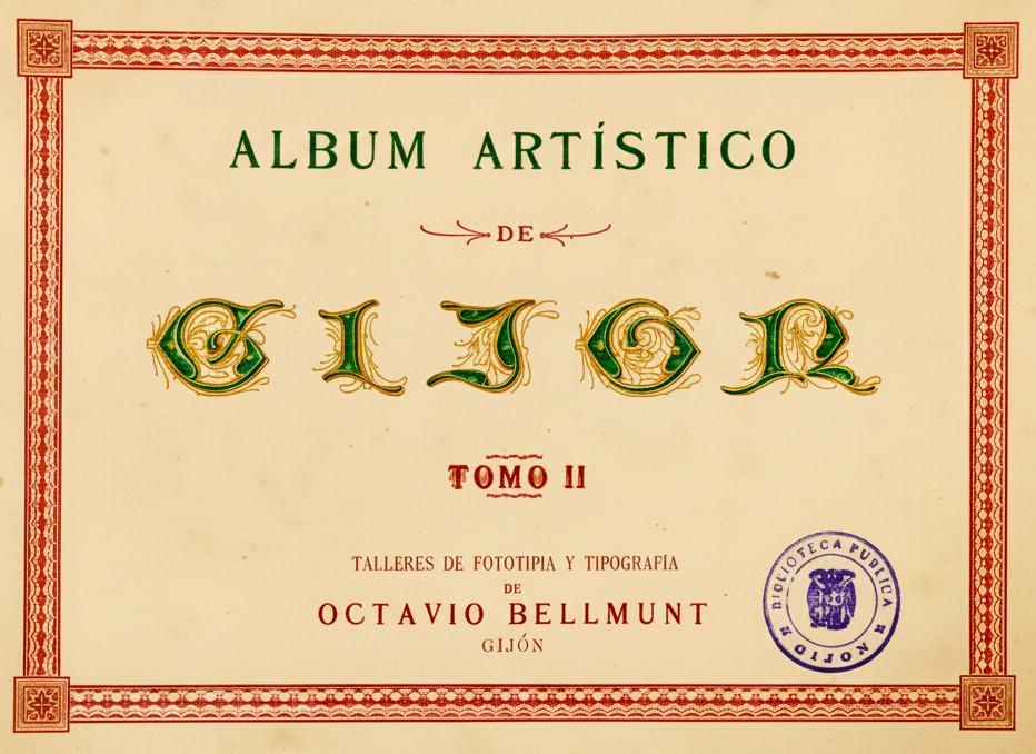 A finales de Mayo de 1894, se ponían a la venta al precio de 24 pesetas, los dos tomos de el Álbum (Artístico) de Gijón impresos en los talleres de fototipia y tipografía de Octavio Bellmunt situados en la Carretera de Villaviciosa nº 25. El preámbulo corrió a cargo de Don Julio Somoza y la obra se componía de 13 láminas fotográficas y 7 hojas tipográficas intercaladas , con anuncios del comercio y la industria local en el tomo I, y 14 láminas y sin publicidad en el tomo II.