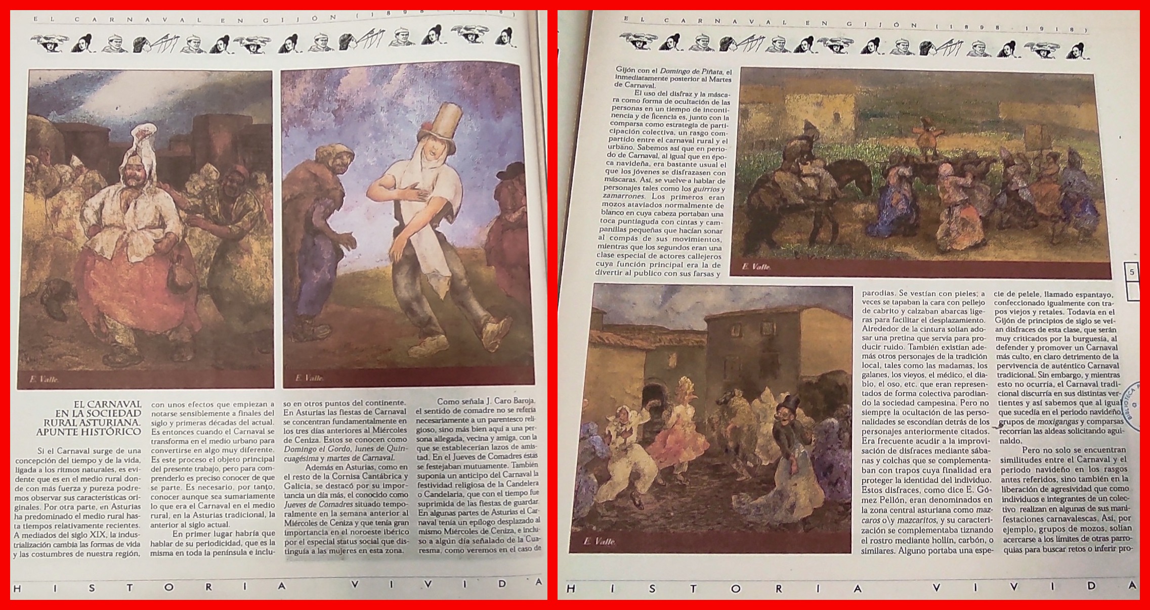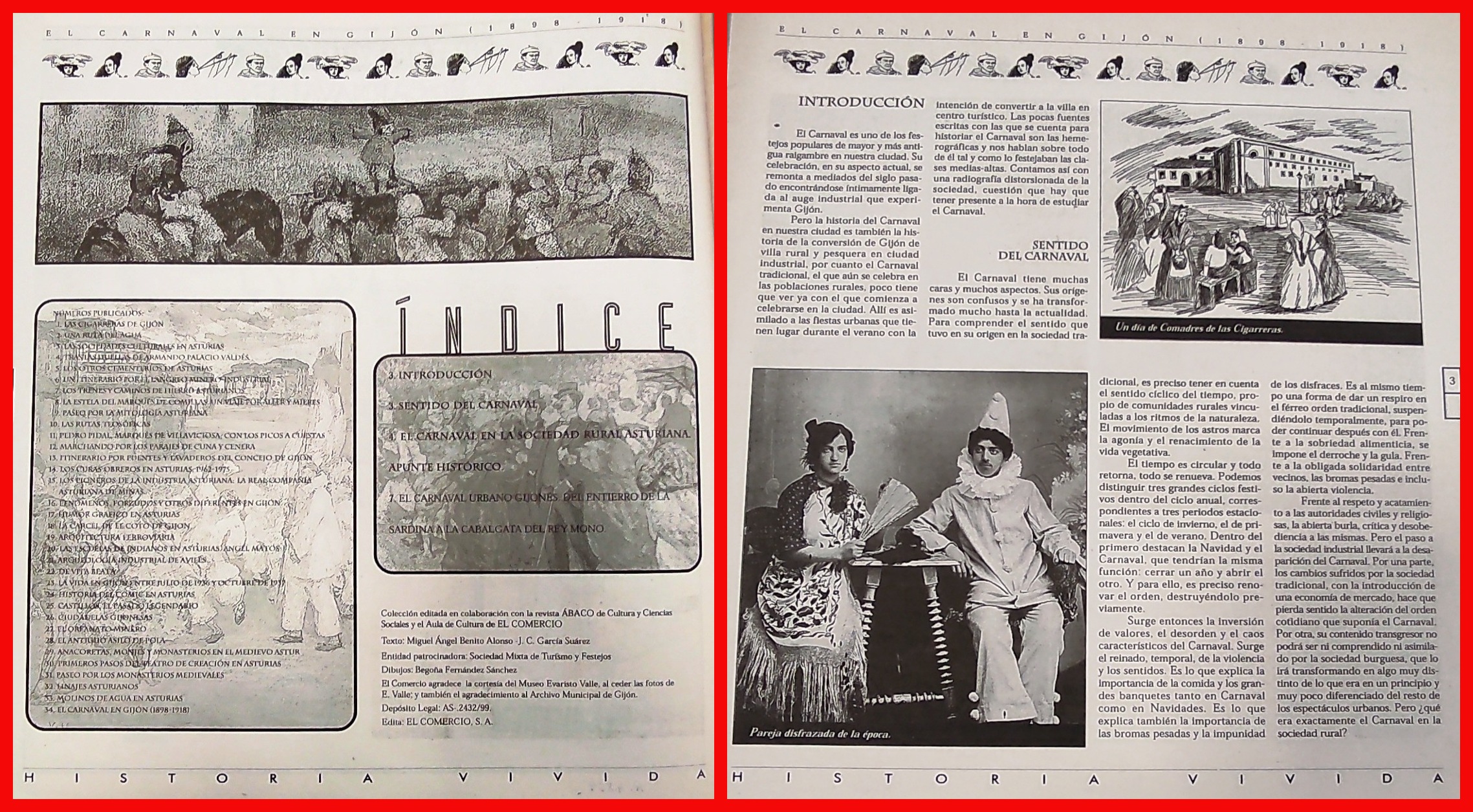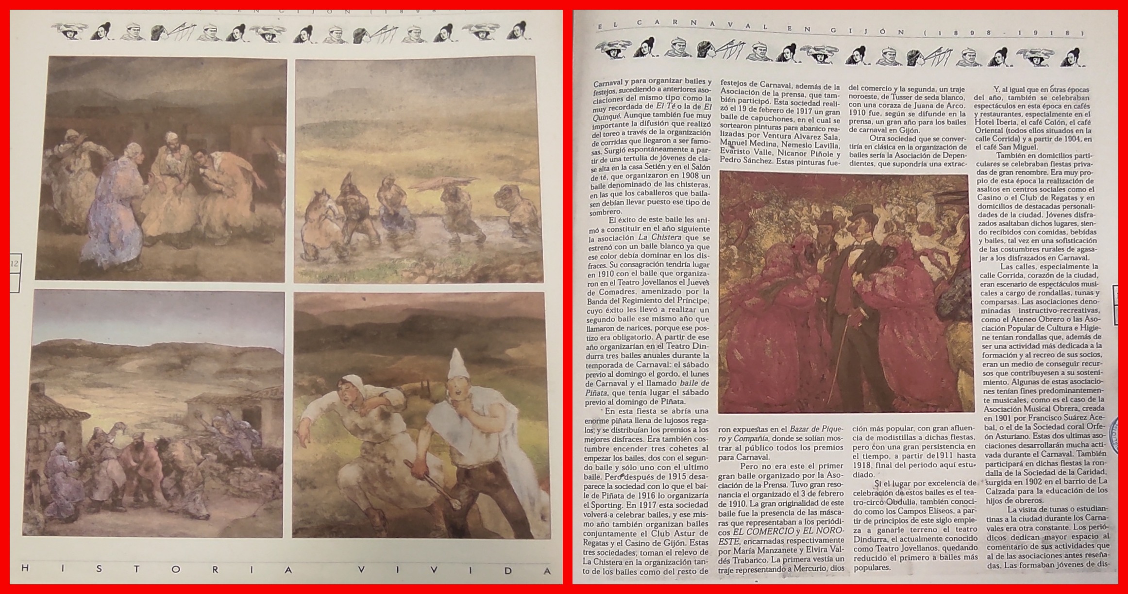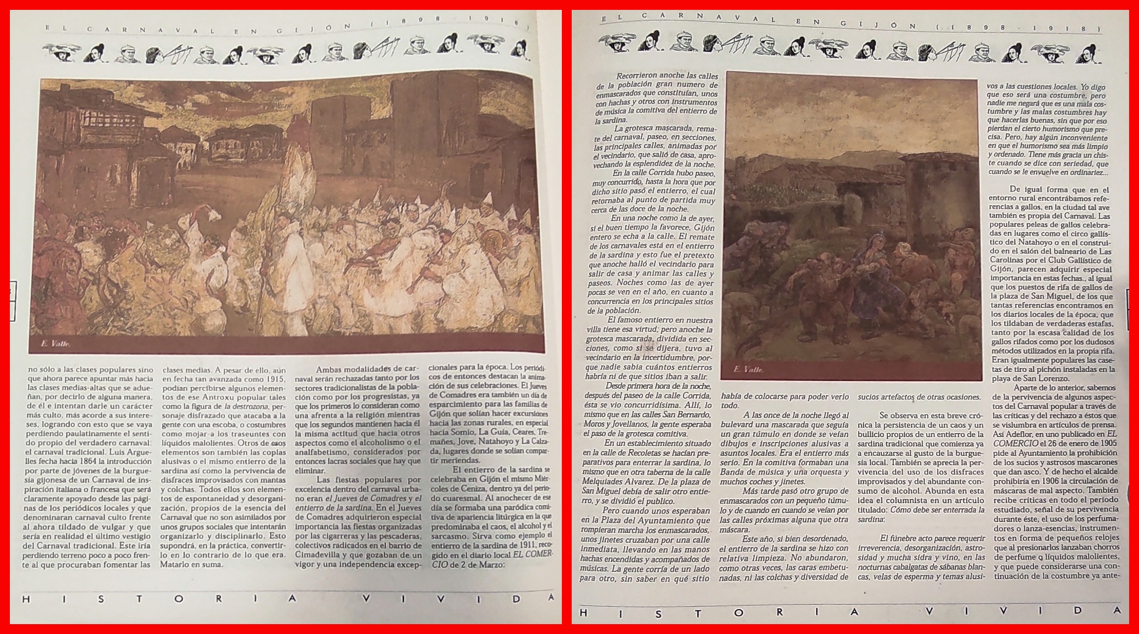 Fiel testigo de los tiempos que vivimos, el fascículo de Historia vivida que acompaña al periódico de mañana, indaga, gracias a los estudios de Miguel Ángel Benito Alonso y de J. C. García Suárez, en el espíritu carnavalesco de Gijón desde 1898 a 1918, germen, sin duda, de la eclosión que esta festividad pagana adquirió en la ciudad en los últimos años, tras una larga etapa de ostracismo.