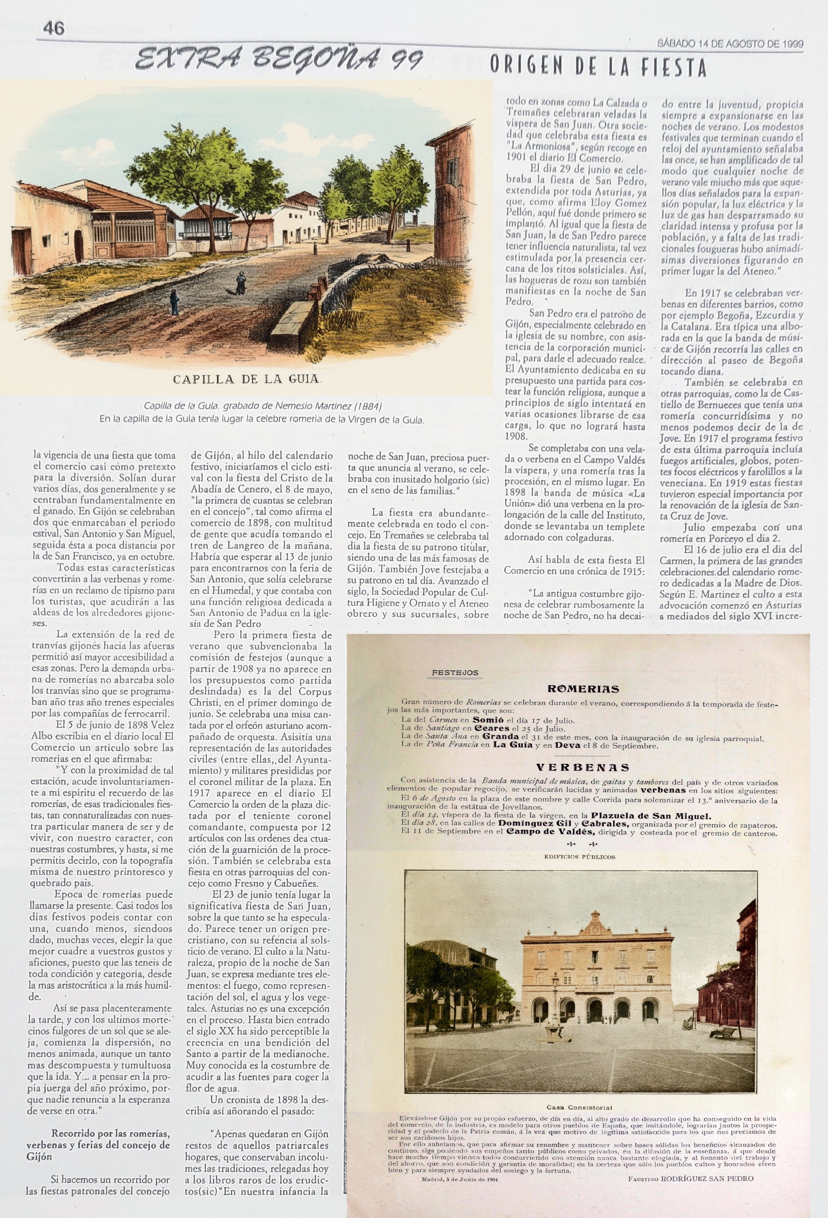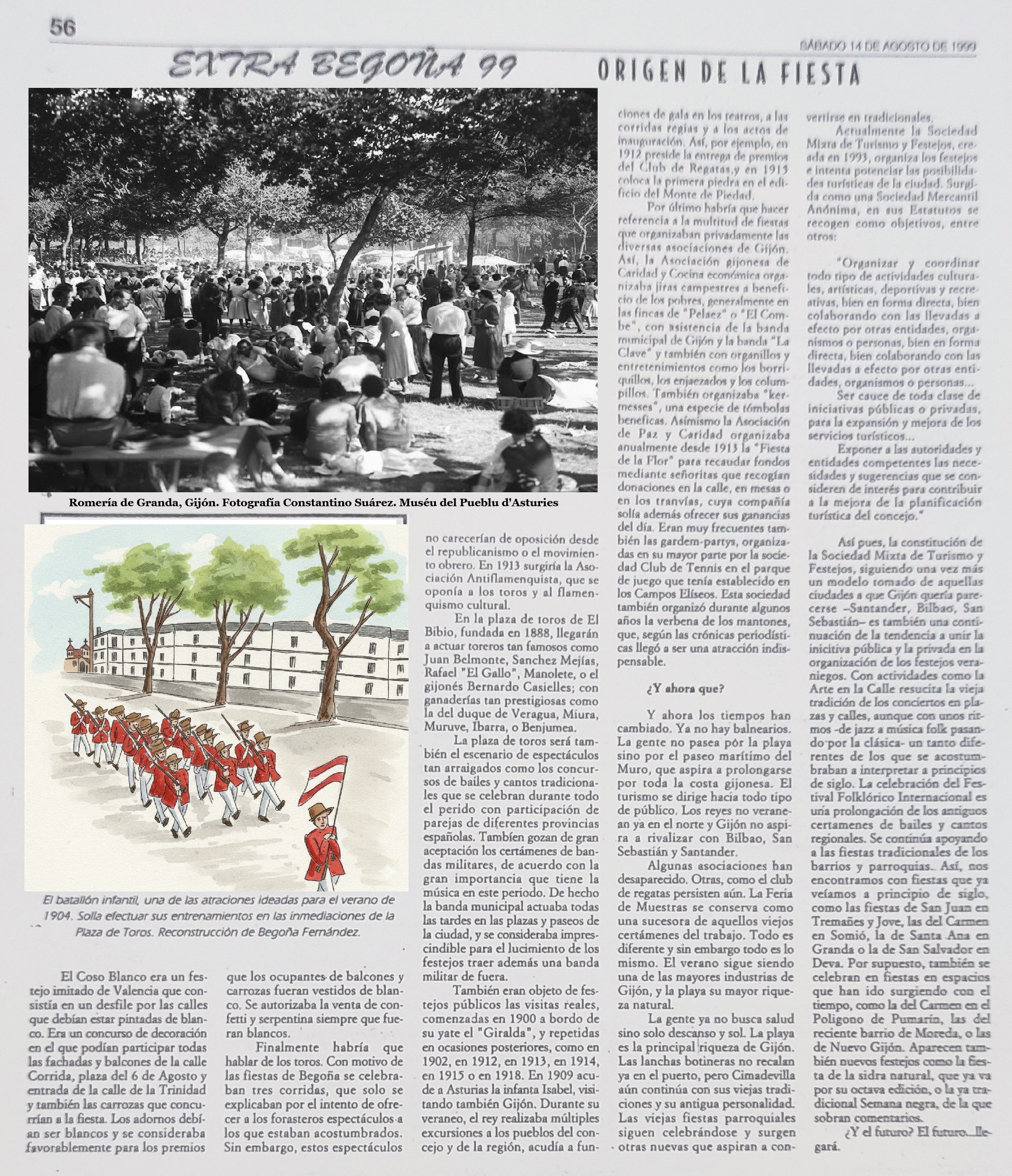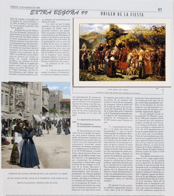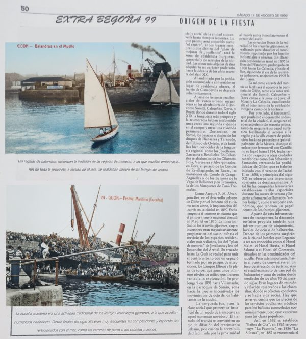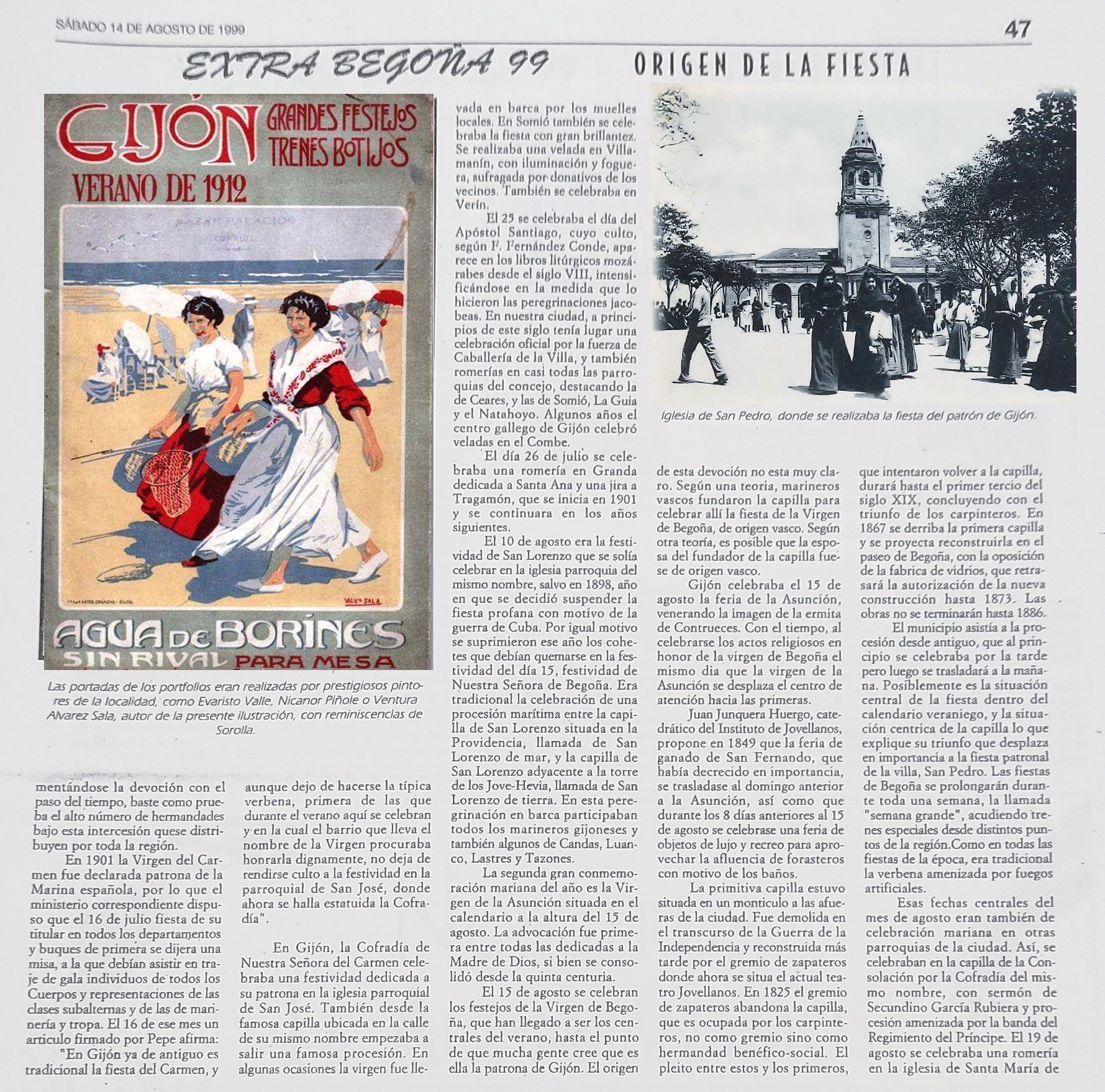 Artículo recogido en el extra de Begoña de 1999 publicado el sábado 14 de agosto por el diario El Comercio, conservo dicho ejemplar que pertenece a mi colección.