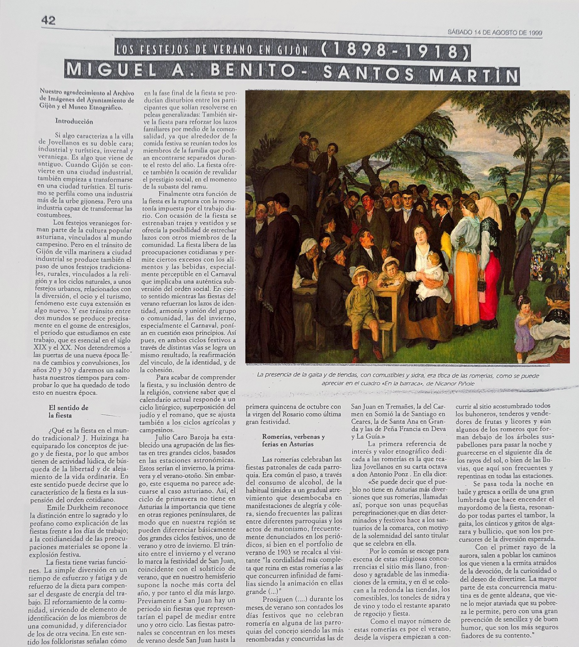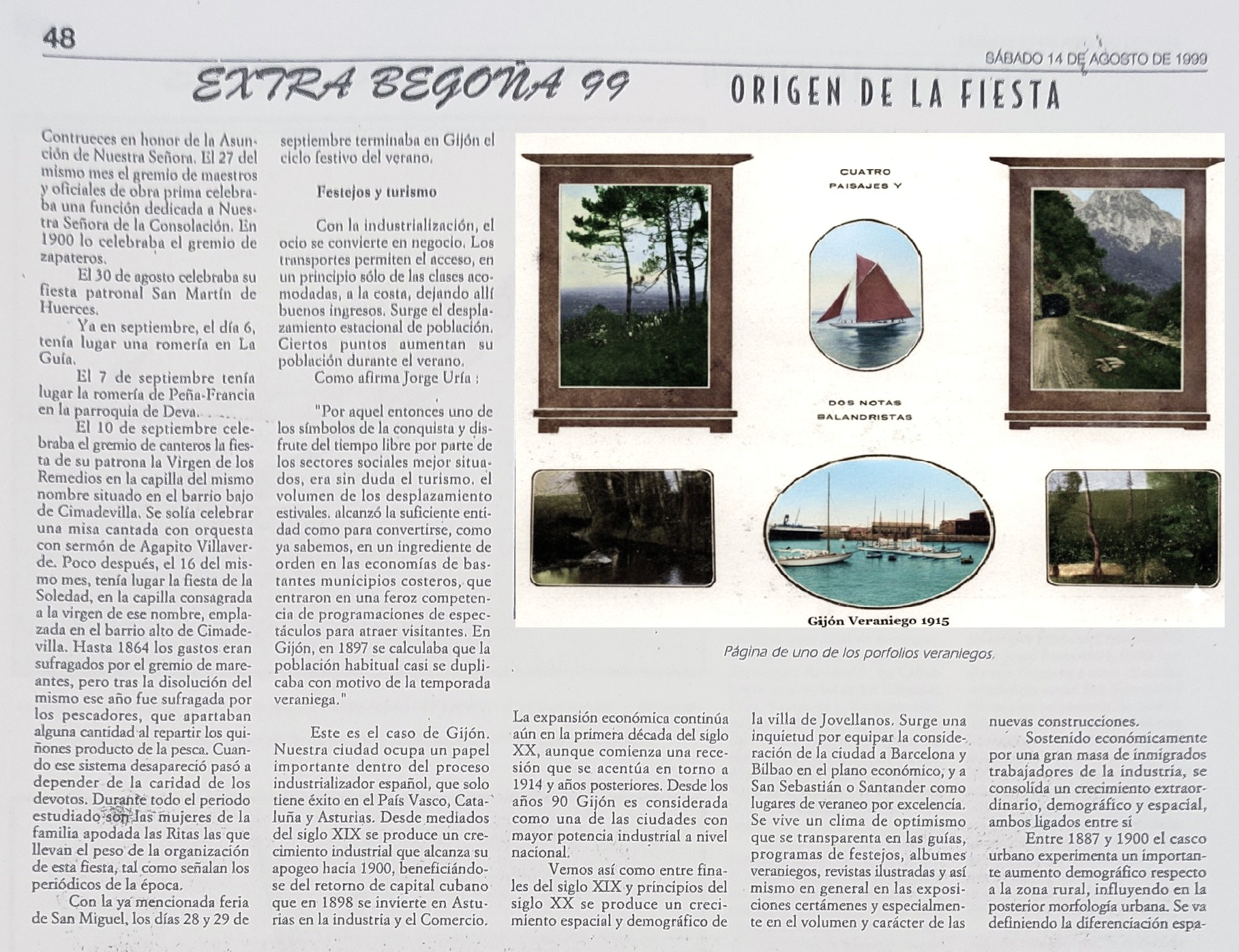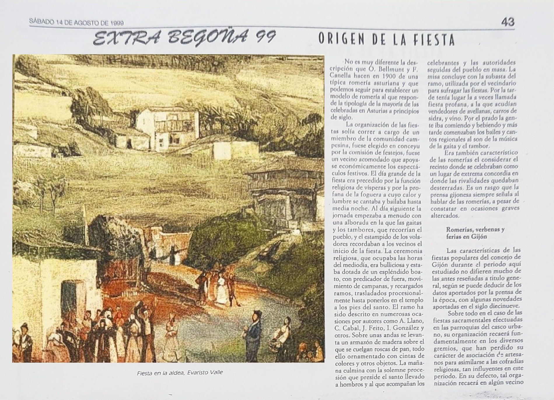 Artículo recogido en el extra de Begoña de 1999 publicado el sábado 14 de agosto por el diario El Comercio, conservo dicho ejemplar que pertenece a mi colección.