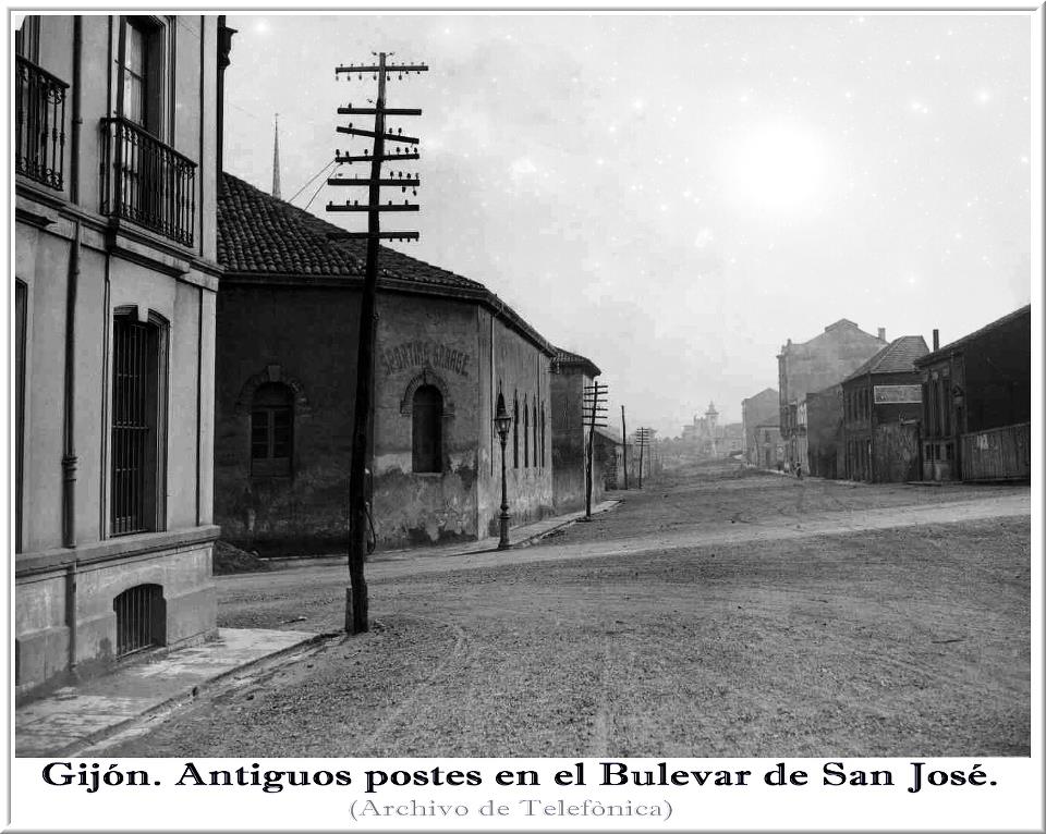 Desde su invención en 1876 por Alexander Graham Bell, el teléfono tardó doce años en llegar a la villa. El 1 de abril de 1888 comenzó a funcionar por primera vez la Red Telefónica de Gijón en su sede de la calle de El Carmen. A lo largo de ese mes, la compañía instaló los primeros postes del tendido. Santiago Arévalo, director de laRed Telefónica, solicitó al Ayuntamiento el permiso para colocar los postes necesarios y que «pueda el público usar desde luego los aparatos telefónicos que tiene pedidos»
