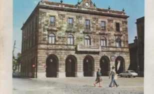 Piñole posa delante de la que fue su casa, recientemente derribada. Fotografía: Alberto Schommer García. Libro : Don Nicanor Piñole, Plaza de Europa 5, Gijón. Ramón Faraldo. Editorial Naranco 1973.