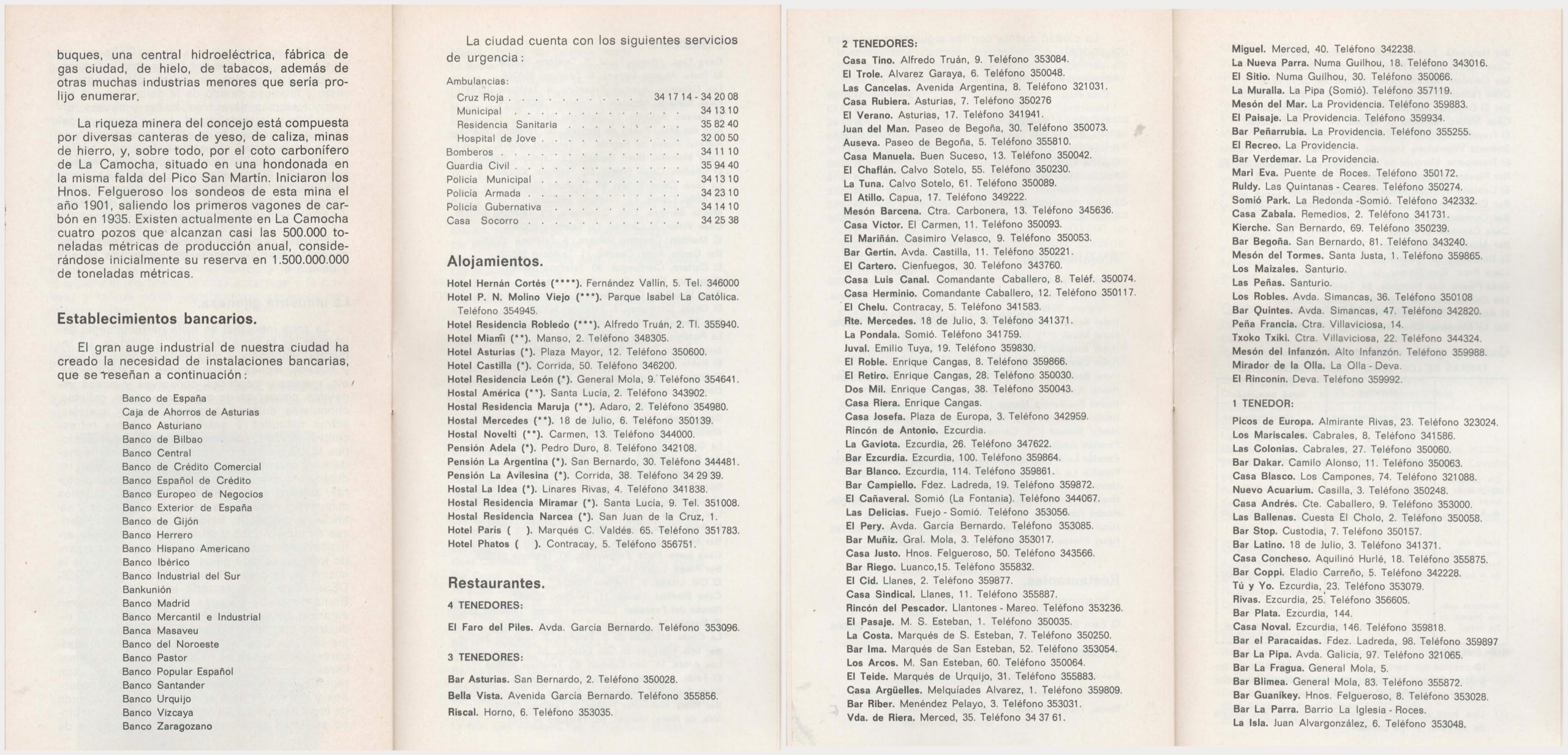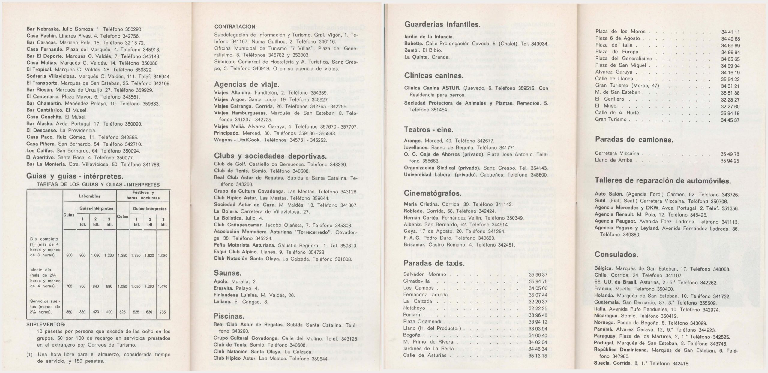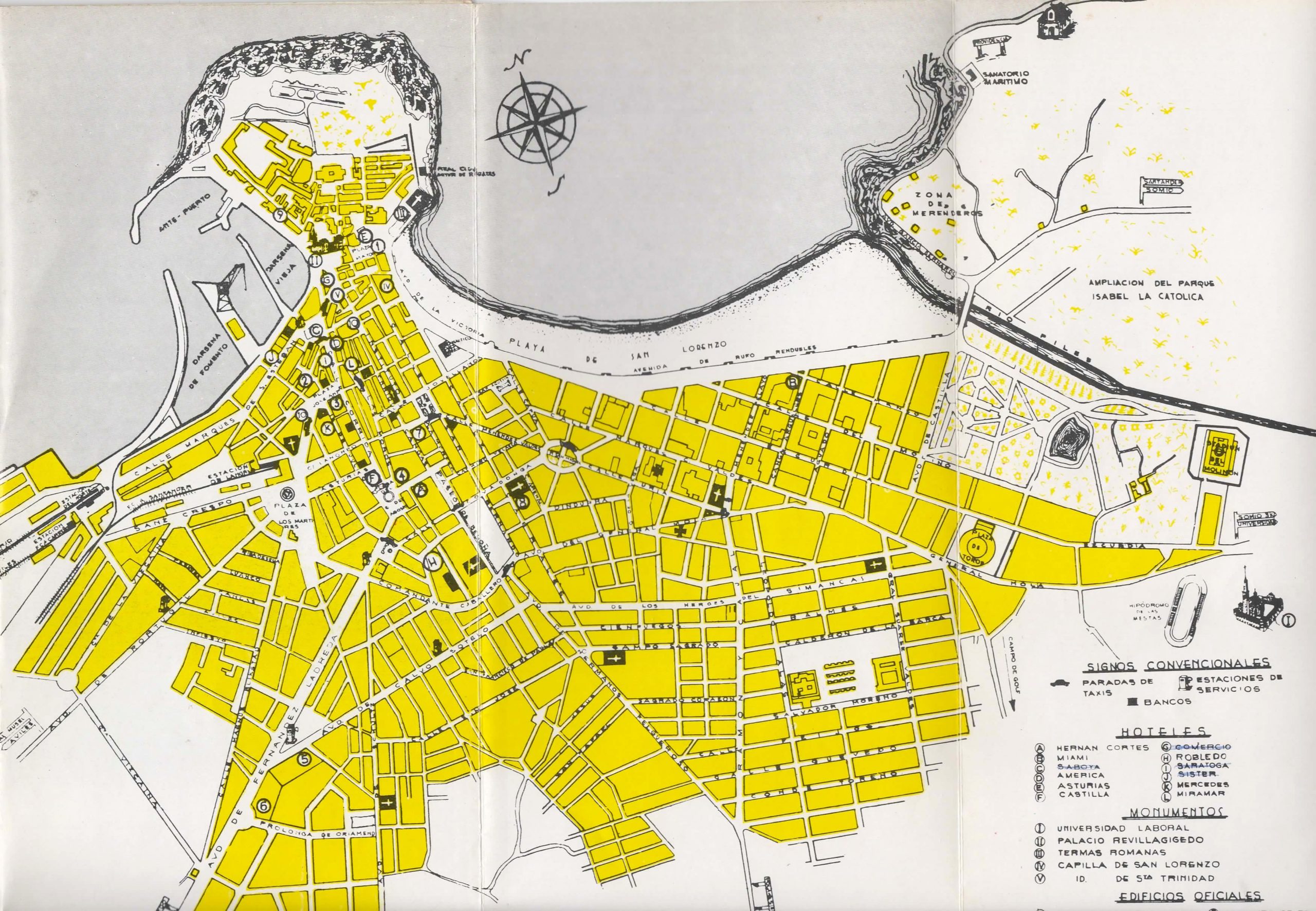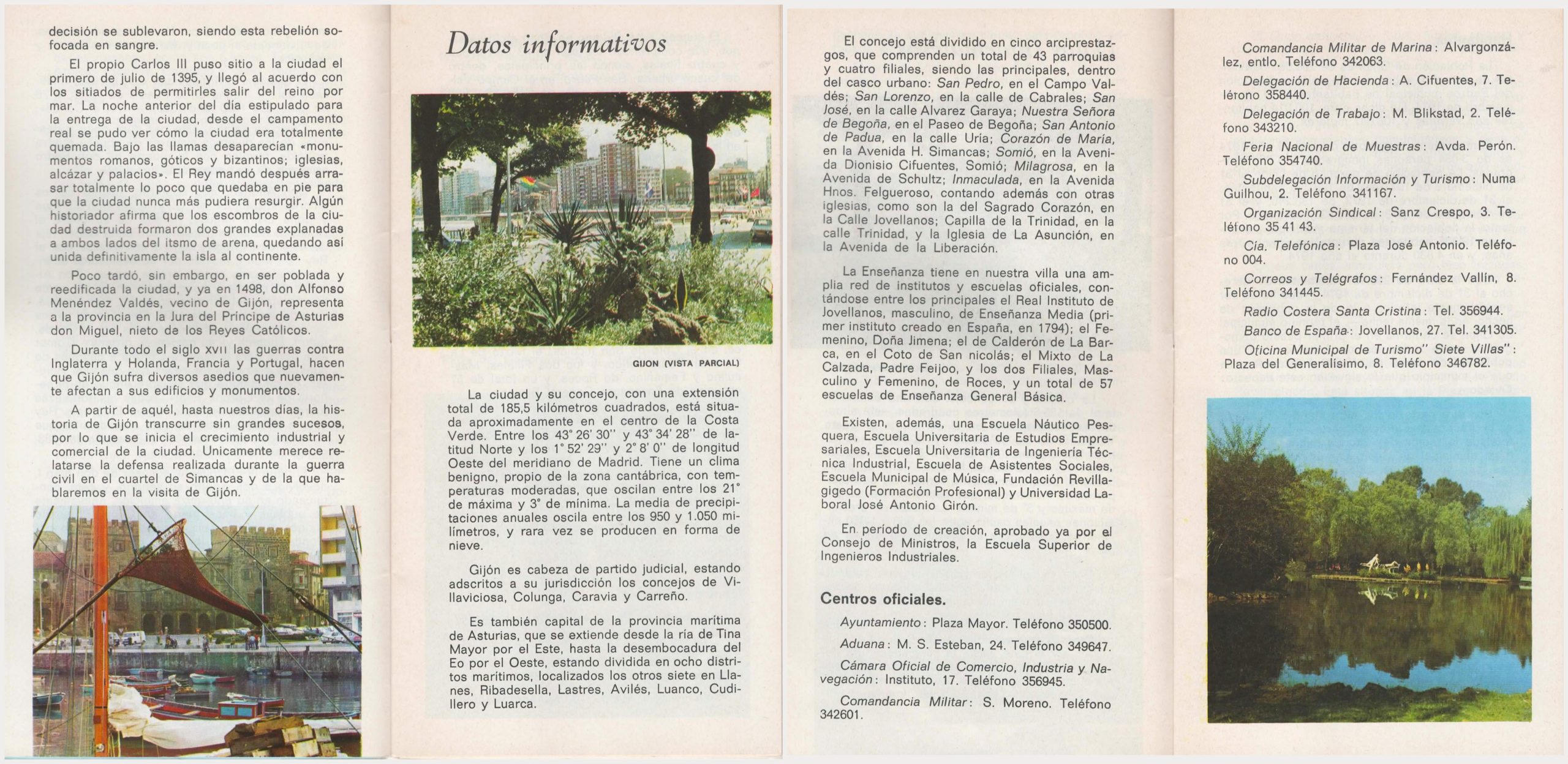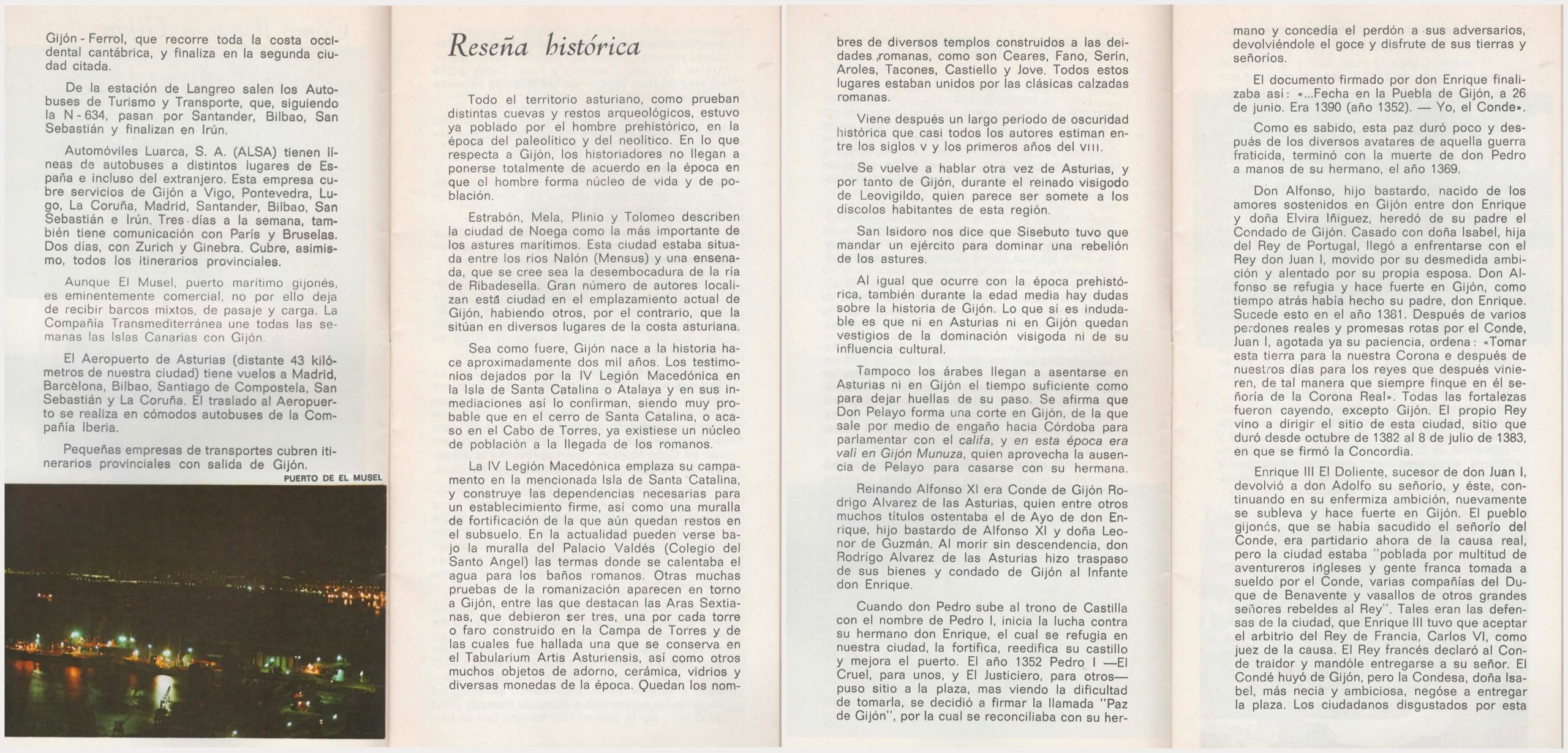 Folleto guía de Gijón editado por el Ayuntamiento en el año 1976, para su distribución en la Oficina Municipal de Turismo, se imprimió en Gráficas Guinea, Gijón.