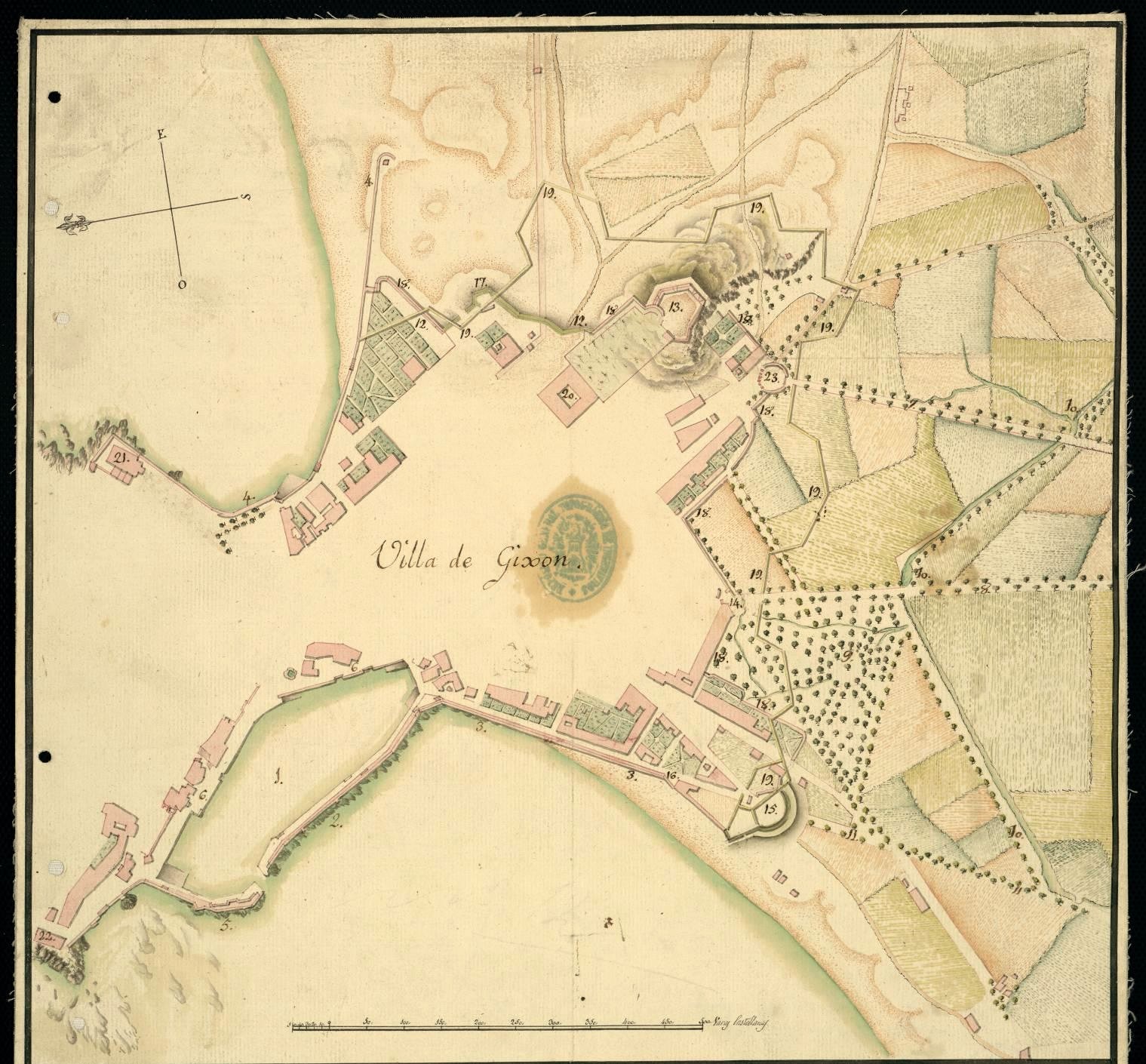 Plano del Puerto y Villa de Gixon en Asturias (Año de 1812) Copia digital