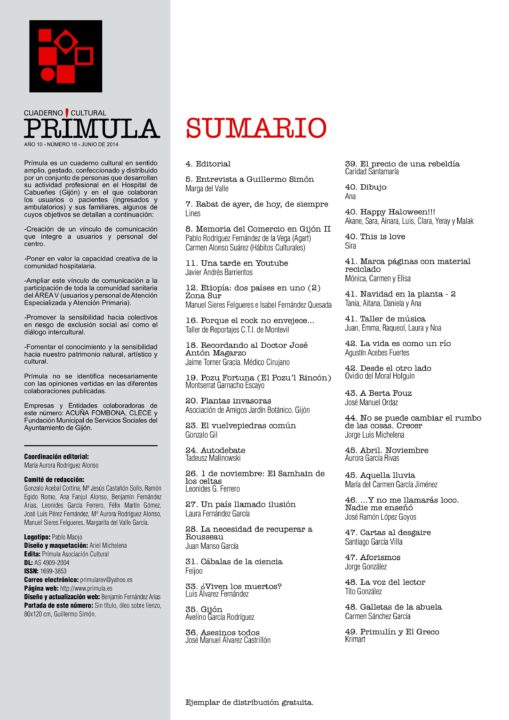 CUADERNO CULTURAL PRIMULA número 20 junio de 2015. Portada de este número: : «Un planeta llamado tierra» (playa de Gueirua), fotografía, Luis Santiago, 2014.